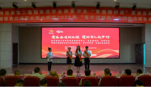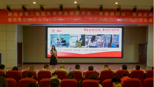 为了深入贯彻立德树人的教育根本任务,进一步发挥国家奖学金、国家励志获奖学生在校园中的典范作用,落实我校“春雨行动”资助育人工作,强化资助育人成效。2024年6月19日上午实训楼六楼报告厅,召开陕西省第二届国家奖学金获奖学生“青春榜样说”宣讲活动暨陕西能源职业技术学院2024年“青年讲师团”典型励志报告会。此次活动由中共陕西省委教育工委、省教育厅主办,我校承办。校党委副书记任向明、学工部(学生处)、校团委负责人及相关工作人员、各二级学院书记(副书记)、学工办主任、全体辅导员及学生代表等400余人参加报告会。