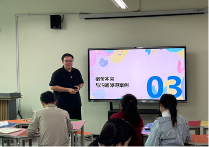 随后,“智青春”工作室成员王艺衡老师立足宿舍管理实务,通过《宿舍冲突与沟通障碍案例》《宿舍违规与冲突升级案例》对比,提炼出“倾听-共情-立界-跟进”四步调解法。针对“学生拒不认错”“矛盾反复爆发”等典型场景,王老师现场演示“非暴力沟通话术”,为辅导员提供可复制的解决方案。