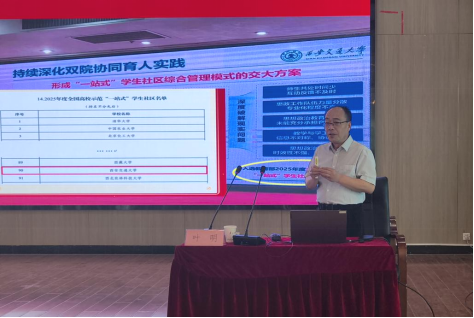 本次讲座特别邀请西安交通大学彭康书院党总支书记、院务主任叶明进行分享。讲座伊始,学工部部长冯超对叶明书记的到来表示热烈欢迎和衷心感谢。他强调,“一站式”学生社区建设是学校落实立德树人根本任务、推进“三全育人”综合改革的重要举措,希望师生们珍惜此次学习机会,汲取先进经验,为学校“一站式”学生社区建设贡献智慧和力量。