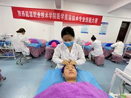 11月25日医学美容技术专业在咸阳校区第二实训室举办美容光电仪器操作技能大赛。