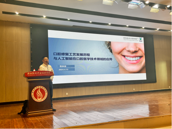 为增进口腔医学技术专业学生对行业的深度了解,提升学生的从业热情,感受技术在口腔医学中带来的魅力,医学技术学院于5月15日下午在实训楼六楼报告厅举办2024年职业教育活动,邀请中华口腔医学会口腔修复工艺专业委员会常务委员、石永吉老师为主讲嘉宾,向全院学生开展《口腔修复工艺发展历程与人工智能在口腔医学技术领域的应用》的报告,口腔医学技术专业学生和专业教师参加。
