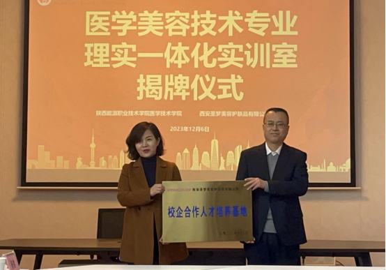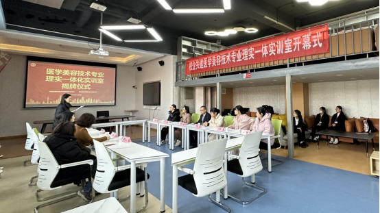 双方为医学美容技术专业理实一体化实训室揭牌。