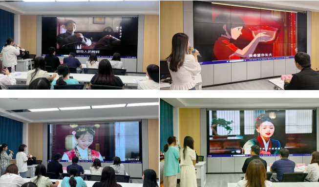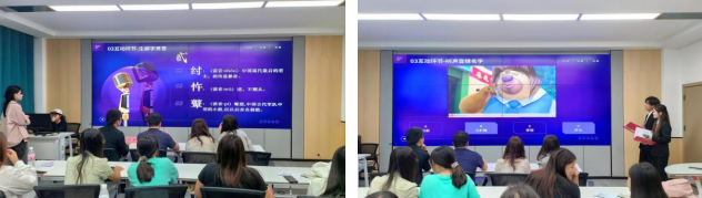 “听声音猜名”——教师们预先录制配音片段现场播放,观众根据对声音的熟悉度聆听竞猜,进一步加深了师生间的感情联系。赛后,评委们从多角度分析,给予了宝贵的指导建议。