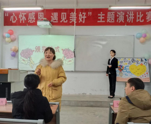 为增强大学生社会责任感,培养感恩之心,落实立德树人根本任务,医学技术学院于2月28日在教学楼109举办“心怀感恩,遇见美好”演讲比赛,党总支副书记韩晓磊,学工办主任郑倩及全体辅导员参加。