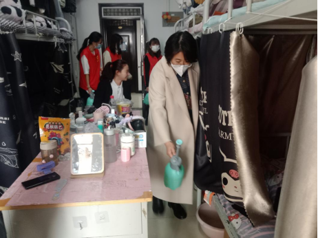 为大力弘扬雷锋精神,有效遏制春季传染病传播,3月8日上午,医学技术学院党总支书记巩明发、副书记韩晓磊带领全体辅导员开展“弘扬雷锋精神·筑牢健康防线”宿舍消杀活动。