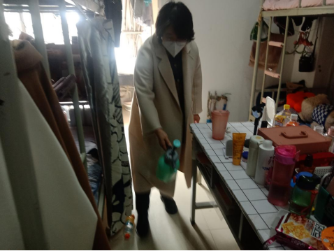 医学技术学院全体学工人员分成两队,分别进入2号、3号、6号学生公寓,逐层、逐片、逐点对学生宿舍进行消杀,做到不留死角、不留盲区,全方位立体消杀,确保宿舍安全,为同学们营造一个卫生、清洁的宿舍环境。