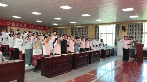 会上,副院长李蕊宣读优秀毕业生表彰决定,党总支副书记冯毅宣读校友理事联络员聘任文件,副院长赵星为校友年级理事、校友联络员颁发聘书。学工党支部书记蒋文带领党员重温入党誓词、预备党员入党宣誓,引导激励党员在工作、学习和生活中,不忘初心、牢记使命,以优秀共产党员标准严格要求自己,切实发挥先锋模范作用,增强基层党组织的创造力、凝聚力、战斗力。