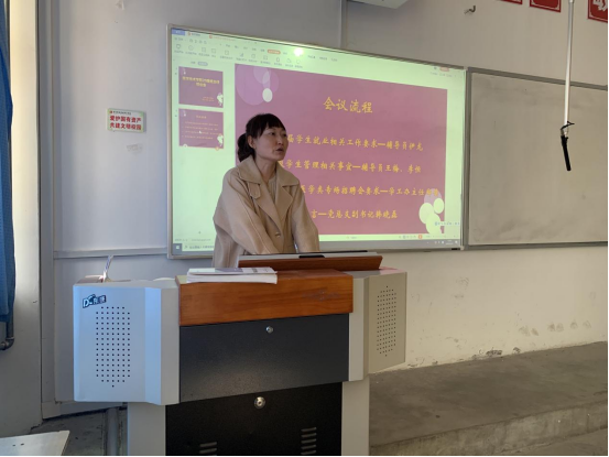 郑倩对近期毕业班就业情况进行通报,要求班主任高度重视就业工作、积极引导本班毕业生提高就业认知,认真做好准备参加招聘会。就业辅导员伊龙分析了当前2023届毕业生就业工作的难点,并重申了毕业生就业工作的四不准原则,班主任要帮助学生树立正确的就业观和择业观,关心关爱就业困难学生群体,及时有效地开展就业帮扶。