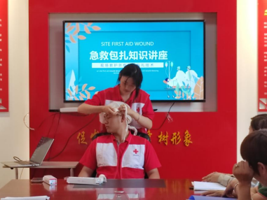 为提高永康颐养中心护工面对突发事件的处置能力和紧急救护能力,7月17日,“阐幽本草 知行合医”暑期社会实践团为永康颐养中心25名护工开展应急救护知识技能培训。