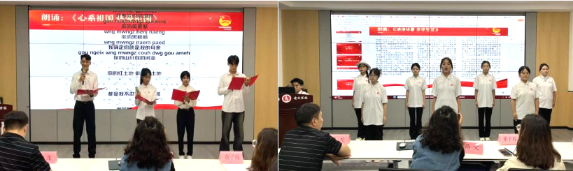 活动间隙,朗诵队带来节目《心系祖国,热爱祖国》《泱泱华夏 步步生花》,用真挚的情感讲述自己对祖国的赤子之心,以富有感染力的声音引领现场师生穿越时空,领略古老华夏文明的魅力,激发大家对祖国的自豪之情和对中华民族伟大复兴的坚定信念。