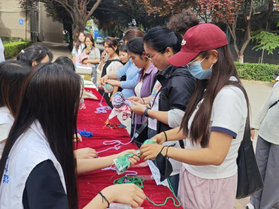 恰逢察隅县 15 人参观团来访,藏陕师生共同体验艾灸、并制作艾灸锤、艾叶香包,在个人手作中体验传统与劳动结合的魅力,收获满满的成就感。