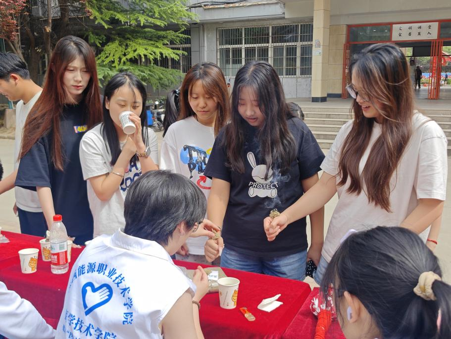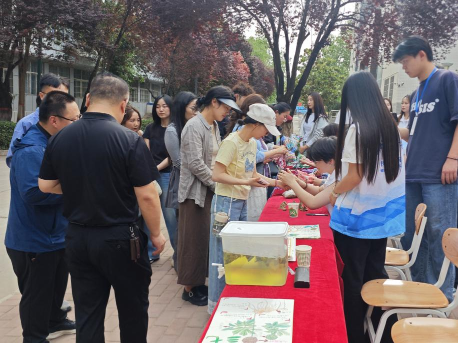 活动分为“本草艺术展”和“艾草工坊”两大环节。在志愿者的带领下,团员青年们通过中草药绘画作品直观了解艾草、金银花等草药的特性与功效,将劳动课堂素材由课内拓展到室外。