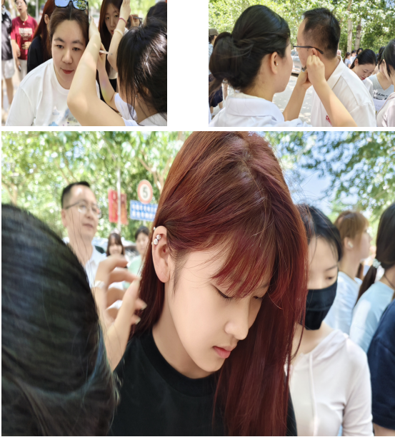 6月5日中午,医学技术学院在临潼校区教学楼林荫大道上开展“传承中医智慧,助力健康体重管理”耳穴篇主题活动。