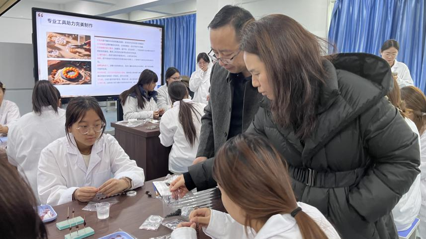 制作环节中,师生们兴致盎然,细心搭配药材、精心编制手串,在交流协作中不仅提升了动手能力,也增强了团队合作意识。学院副院长李蕊、赵星以及党总支副书记张多亲临活动现场指导,与师生亲切交流,鼓励大家在实际操作中感悟中医药文化的深厚底蕴,将严谨求实的专业态度与精益求精的工匠精神融入学习与未来职业发展中。