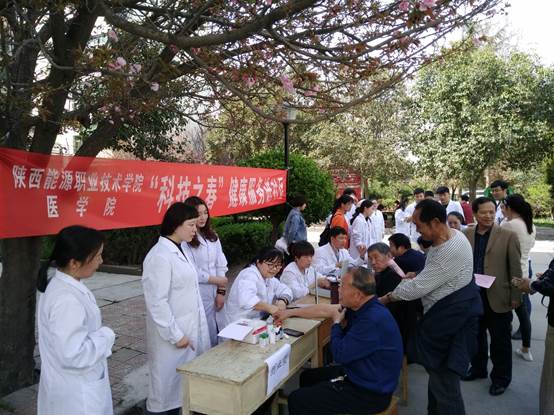 为深入贯彻落实《全民科学素质行动计划纲要》,按照省教育厅办公室《关于组织开展第二十六届“科技之春”宣传月活动的通知》要求,医学院联合文苑社区于3月27日在咸阳市渭城区文林小区开展了健康服务进社区活动。学校党委书记令狐培选、科研信息处处长闫光准、党政办副主任李炜怿、医学院院长高惠霞、医学院副院长韩晓磊及医学院师生20余人参加了本次活动。