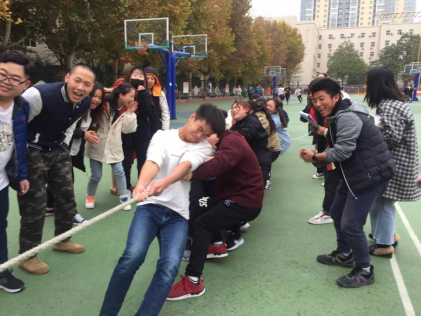比赛一开始欢呼声、跺脚声就融成一片。选手们鼓足了劲,红耳赤,咬紧了牙,用力抓紧大麻绳使劲往后拉,各个班组织成立自己的拉拉队,为各班加油、助威、呐喊。此时此刻,我们的心紧紧连在一起,心里有着共同的目标,为了共同的目标,我们一起努力一起奋斗着。伴着清脆的哨声在运动场上空久久回荡,充分展示了医学院学生的凝聚力和向心力。