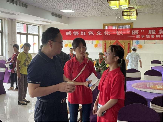 7月17日,我校校长朱忠军前往咸阳市武功县小村镇后稷养老院慰问“感悟红色文化,以‘医’服务武功”暑期社会实践团师生。