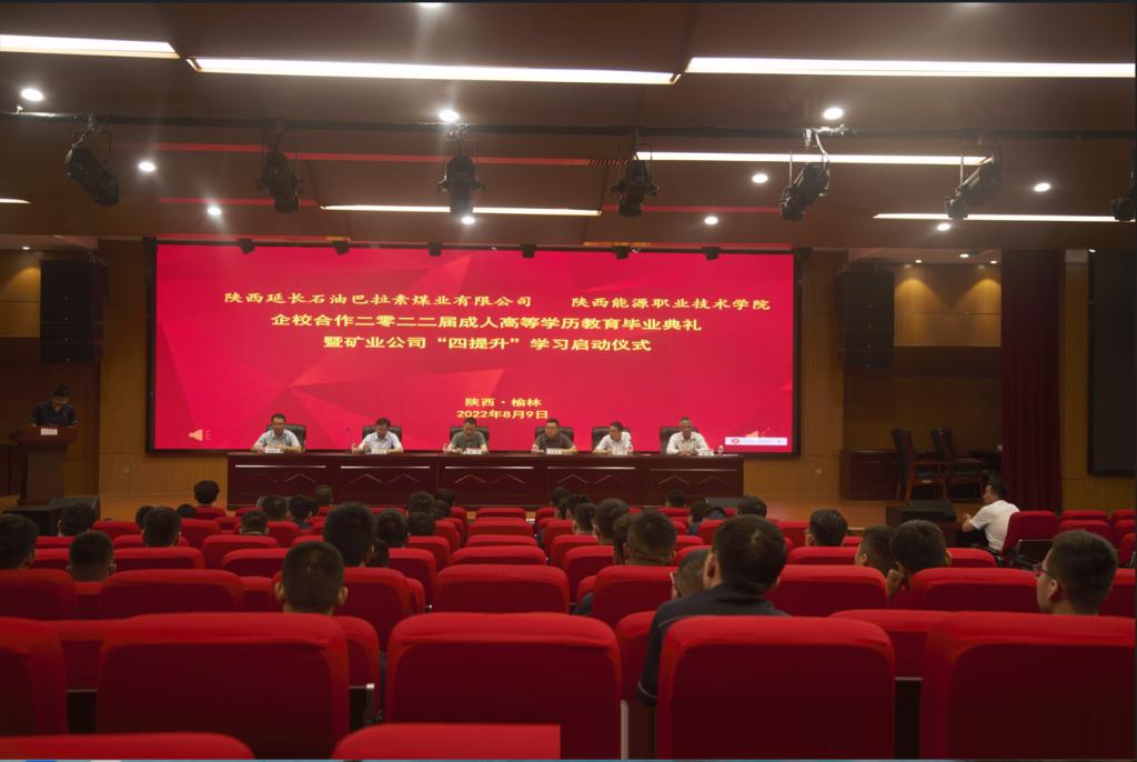 8月9日,我校2022届成人高等学历教育毕业典礼暨延长石油矿业公司“四提升”学习启动仪式在延长石油巴拉素煤业公司多功能厅举行。陕西延长石油矿业有限责任公司副总经理封华,公司人力资源部经理马军强,巴拉素煤业公司副总经理王宇,我校继续教育学院院长刘金娃出席典礼。我校继续教育学院函授部负责人、企业人力资源部代表、部分教师代表以及73名毕业生参加典礼,继续教育学院成教部主任张继军主持典礼。