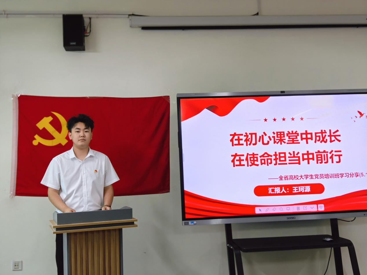活动尾声,学生党员王珂源结合自身参加“全省高校大学生党员示范培训班”的经历,以“五个从”为线索,与在场师生分享了一段“从思想到行动”的成长蜕变。