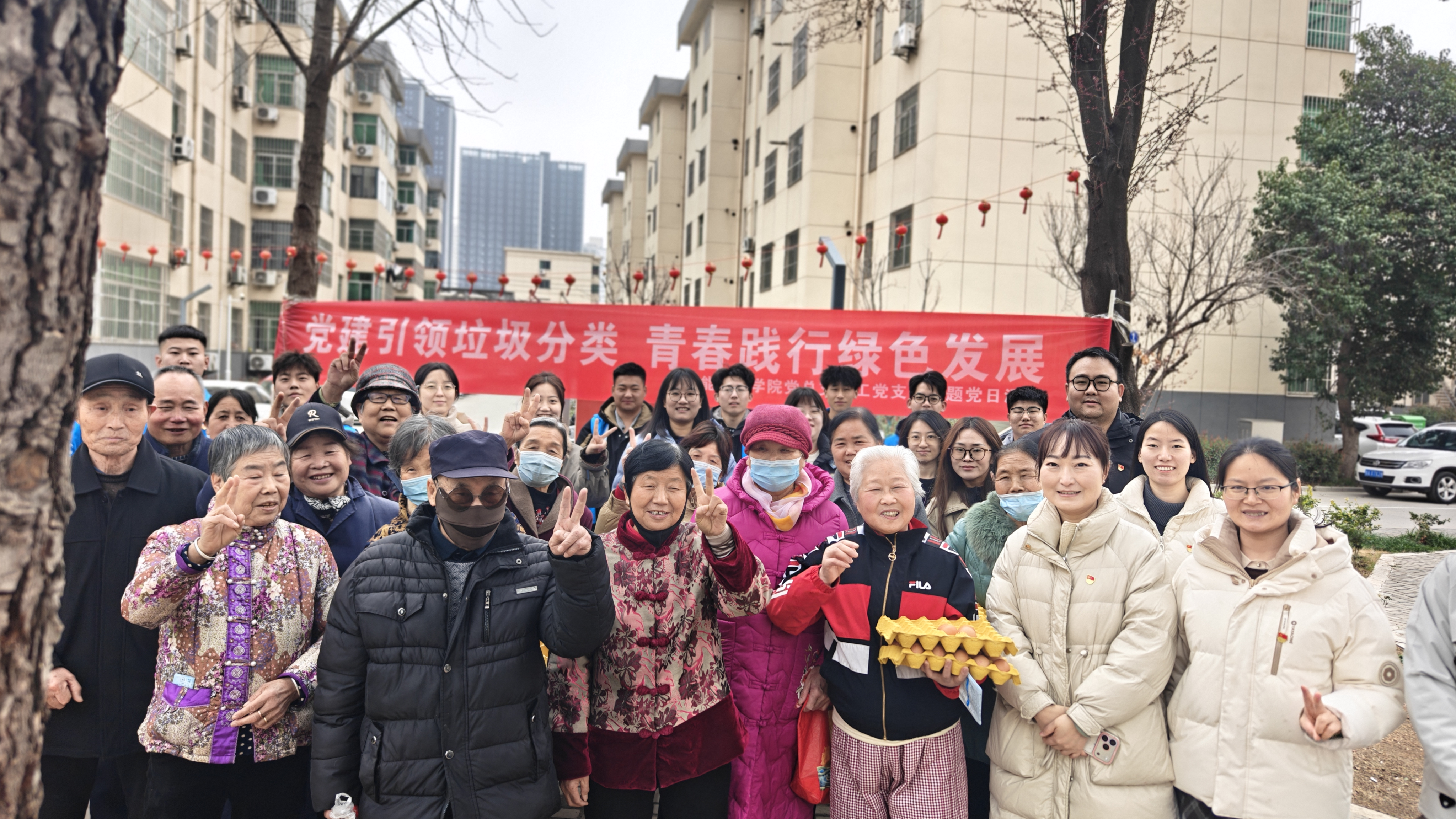 作为本次活动的重点环节,智能机电学院团委同步开展了垃圾分类知识科普宣传活动。本次宣讲内容全部基于前期学生志愿者在咸阳城市生活垃圾分类教育基地的学习成果,参与宣讲的志愿者均经过基地的系统化专业培训,考核合格后才走上社区宣讲岗位。学生志愿者作为主讲人,通过现场讲解、互动问答、发放宣传资料等方式,向居民深入浅出地普及垃圾分类的重要意义、分类方法和投放技巧。为提升群众参与热情,活动特别设置"参与有礼"环节,向积极参与的社区居民发放鸡蛋、纸巾等实用小礼品,吸引了大批居民驻足参与,现场气氛热烈,互动频繁。