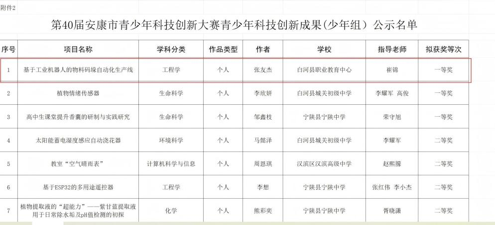 在学生培养与校园服务中,帮扶成效显著。崔锦固定每周开展晚自习辅导,补齐学生知识短板,指导学生凭借《基于工业机器人的物料码垛自动化生产线》项目斩获第40届安康市青少年科技创新大赛一等奖,实现近年来该校在该赛事上零的突破;王艳蓉以高度的责任感投身技能大赛指导工作,每日课后与学生团队深入研讨,引导学生提升技能水准,为技能大赛打下坚实基础。此外,两位教师积极参与学校各项教学和安全管理工作,10月31日学校举办第六届秋季田径运动会,分别承担赛事执裁、秩序维护与田径裁判工作;同时加入校园值班团队,完成6:30-22:10时段的校园巡查与学生管理任务,守护校园安全。