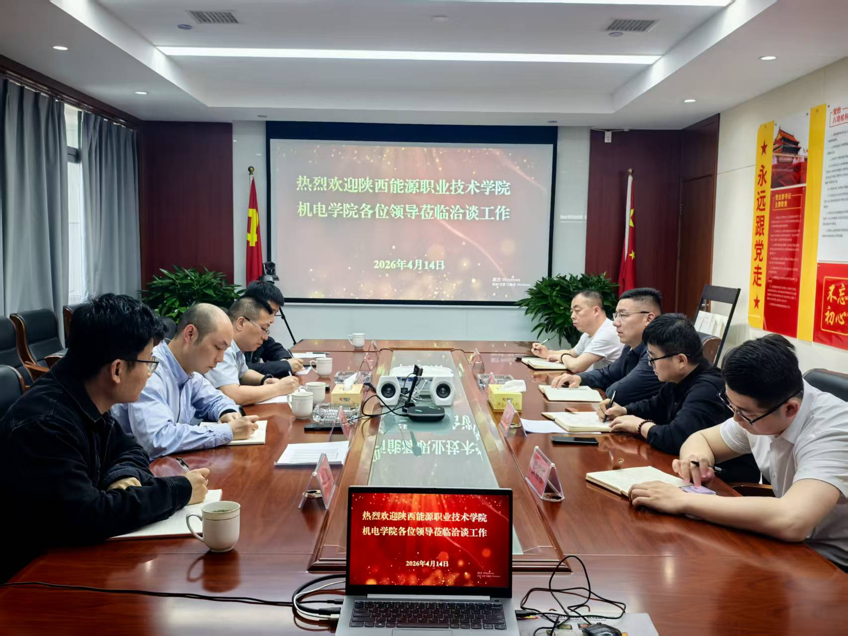 为深化产教融合、精准对接企业用人需求,扎实推进“访企拓岗促就业”专项行动,2026年4月15日下午,智能机电学院院长贾永军、副书记王皓天一行,赴陕西泰盛能源工程有限公司走访交流,并与企业就订单班建设、学员培养与就业合作等核心议题开展座谈交流,泰盛能源公司总经理和雷、副总经理魏刚及相关人事负责人出席会议。