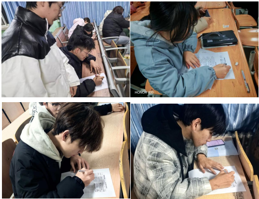 诵读完毕后,同学们怀着严肃认真的态度,依次在《大学生诚信承诺书》上郑重签下自己的姓名。一笔一划间,不仅是对承诺书内容的全面认可,更是对坚守诚信品质的庄严宣誓,承载着当代大学生对自身行为的严格约束,以及对成为诚实守信高素质人才的坚定追求。签字完成后,学院学工办妥善留存承诺书,建立起完善的承诺人签字档案,为后续诚信教育监督工作筑牢基础。