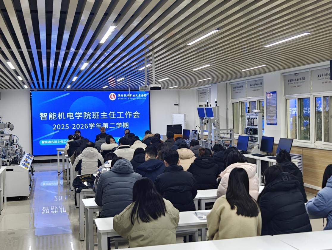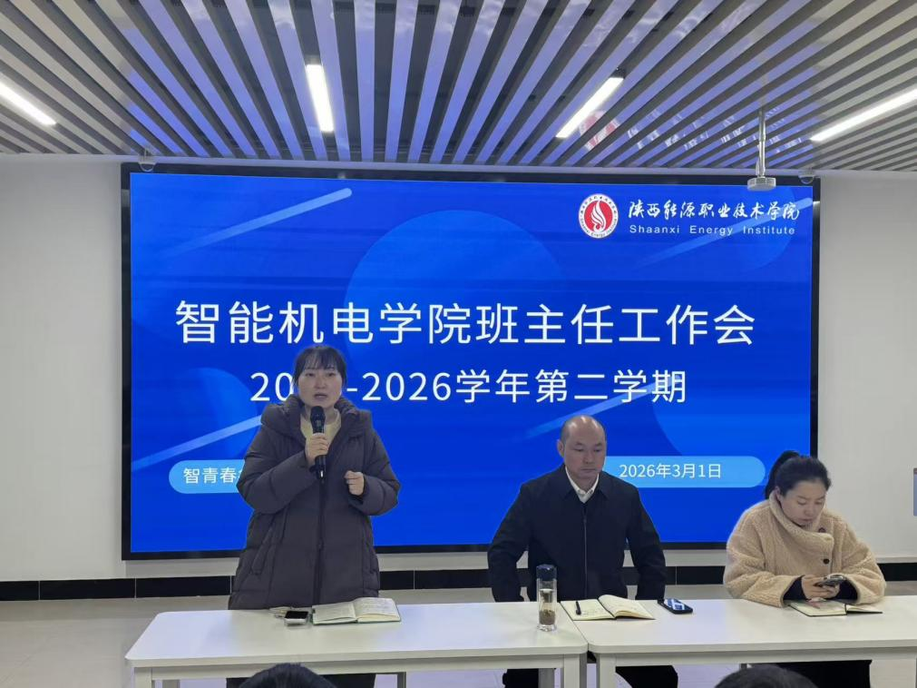为全面落实新学期学生管理各项要求,筑牢校园安全稳定防线,扎实推进开展各项工作,2026年3月1日,智能机电学院“智青春”名班主任工作室于第一实训楼305召开班主任工作例会。学院党总支副书记王皓天、焦娇、学工办主任郑倩、全体辅导员及班主任参会。本次会议重点围绕安全教育、宿舍管理、学风建设、就业及学生日常管理展开。此次班主任会议对新学期班主任工作进行全面、细致的部署,为新学期各项工作的顺利推进指明方向。