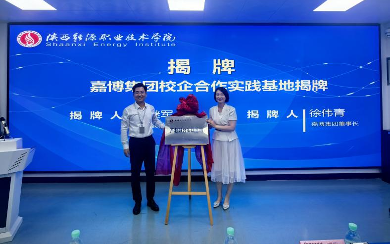 在联合体建设推动下,我校与嘉博集团在学生实习培训、教师企业实践、技能大赛培训等方面建立了紧密合作关系,共建校企合作实践基地。罗继军校长和嘉博集团徐伟青董事长,共同为“校企合作实践基地”揭牌。