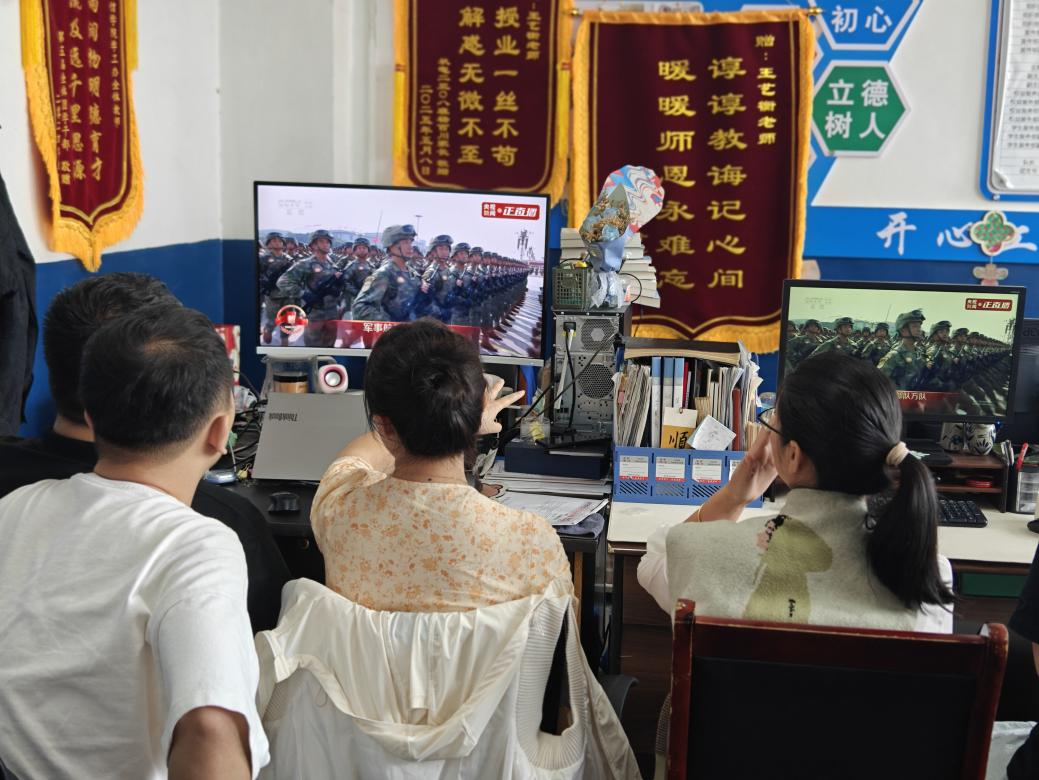当阅兵仪式正式开始,看着一个个整齐的方队、先进的武器装备依次通过天安门广场,师生们的自豪感和爱国情怀油然而生。大家纷纷表示,通过观看阅兵,深刻感受到了祖国的强大和抗战胜利的伟大意义,在今后的工作和学习中,将铭记历史,传承和弘扬抗战精神,为实现中华民族伟大复兴的中国梦贡献自己的力量。