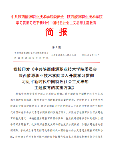 学习贯彻习近平新时代中国特色社会主义思想主题教育简报第1期