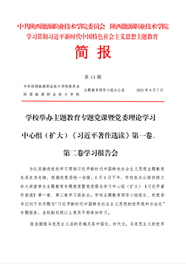 学习贯彻习近平新时代中国特色社会主义思想主题教育简报第14期