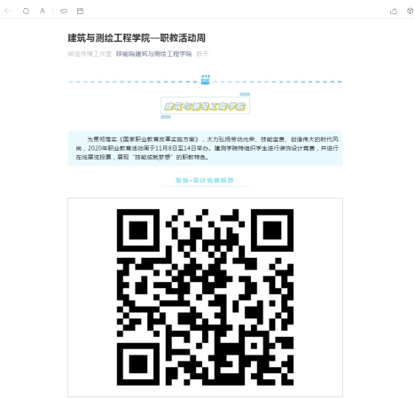 为贯彻落实《国家职业教育改革实施方案》,大力弘扬劳动光荣、技能宝贵、创造伟大的时代风尚,建测学院职业教育活动周特组织学生进行装饰设计竞赛,于11月11日至14日举办。并进行在线展览投票,展现“技能成就梦想”的职教特色。
