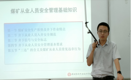 现场,穆驰做题为“煤矿从业人员安全管理基础知识”的科普讲座。同学们通过讲座,掌握了煤矿安全生产形势及井下作业特点、井下从业人员入井安全规范、井下信号与安全标志、井下从业人员安全管理基本要求“三违”的含义及煤矿从业人员常见违章行为,表示在今后学习中更加重视专业课学习,努力提升职业修养。