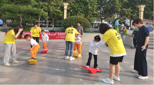 同学们让家长扫二维码关注人文红烛公众号,加强专业关注度,普及了婴幼儿急救知识,带领小朋友做锻炼平衡发展小游戏。小朋友们踊跃参与到活动中,气氛热烈,充满朝气。