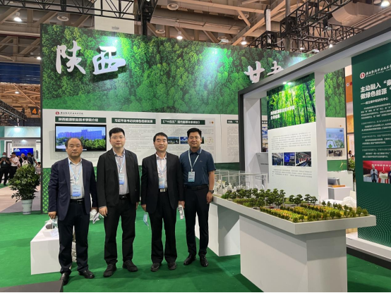省教工委统战部部长孙全学(右二)、陕西省教育厅职成教处副处长周杰(右三)莅临我校展区