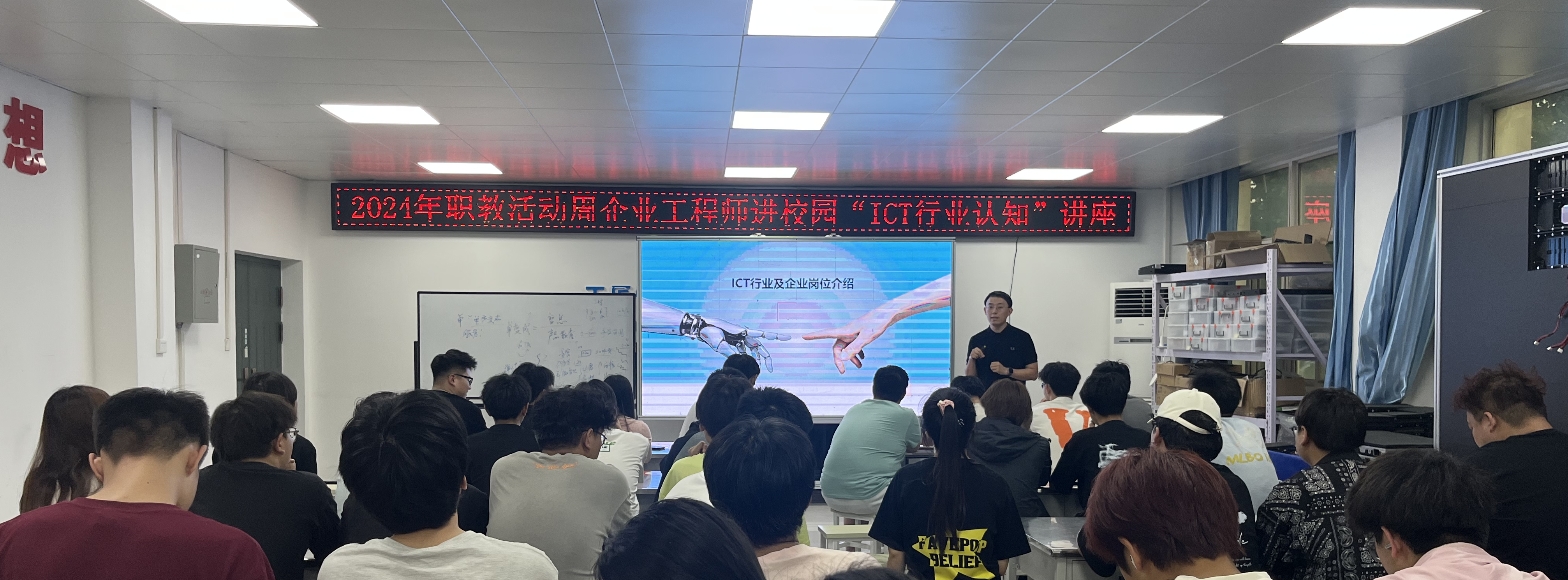 2024年5月16日下午,正值职业教育活动周期间,智能制造与信息工程学院特邀请西安漫威智能科技有限公司的屈煜晖工程师在第一实训楼405为为信息类专业的学生带来了一场题为“ICT行业及企业岗位介绍”的专业讲座。