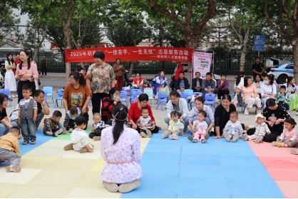 活动在愉快的《欢乐彩虹伞》亲子游戏中拉开序幕。家长与孩子们手拉彩虹伞,跟随节奏律动,转圈奔跑,时而掀起“海底寻宝”的热潮。乾县职教中心的师生精心设计游戏环节,通过毛绒玩具寻宝和亲子协作,锻炼婴幼儿的感知力与反应能力。