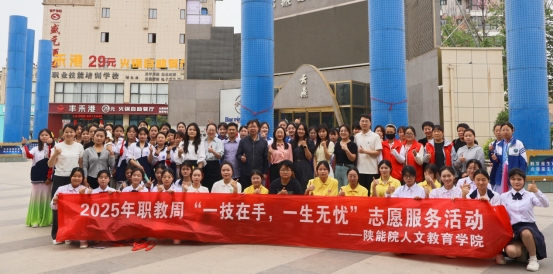 5月14日上午,人文教育学院与乾县职业教育中心在乾县东大街社区铜牛广场联合举办“一技在手,一生无忧”职教周志愿服务活动。